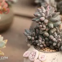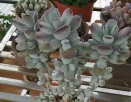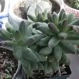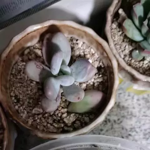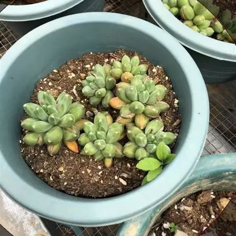 最常见的三种美人:东美人、白美人和青星美人 东美人 Pachyveria pachyphytoides Walth也被叫做冬美人,为景天科厚叶草属和石莲花属杂交培育的园艺品种,通常被当做厚叶草属,是比较常见的美人系列多肉植物,容易群生,容易养护,有时候一些街边巷尾老房子里甚至可以看到它的踪迹,是国内分布最广的多肉植物之一。东美人随季节和养护环境的不同,形态会比较多变,颜色可以有粉蓝、粉白、粉红,粉黄各种颜色的变化。