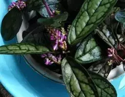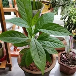 单叶互生,叶片或多或少肉质,椭圆形,长1.5-4厘米,宽0.6-1.5(-2)厘米,先端钝或近圆形,具短尖头,基部楔形或近圆形,全缘,叶面绿色,无毛或沿叶的边缘被白色短刚毛,背面淡绿色带紫,无毛,主脉上面微凹,背面稍隆起,侧脉3对,不明显;叶柄长5-10毫米,无毛。