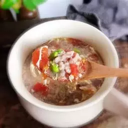 番茄肉丝汤是一道简单的家常菜,主料是番茄150克,猪肉100克,花生油、料酒、味精、盐、香油、葱末…