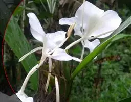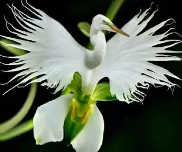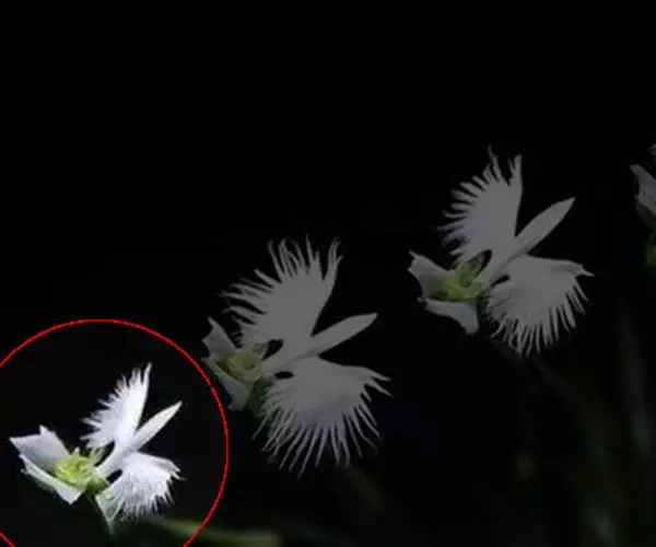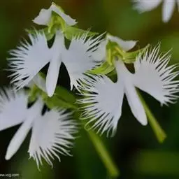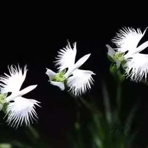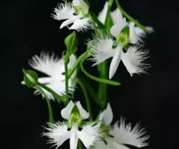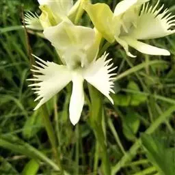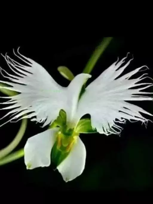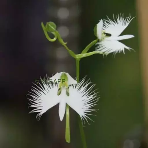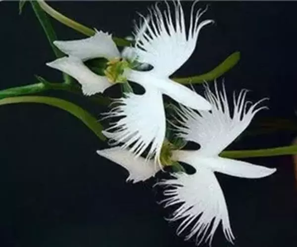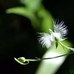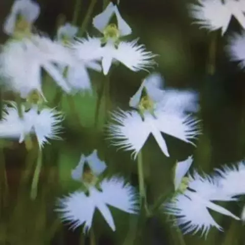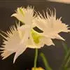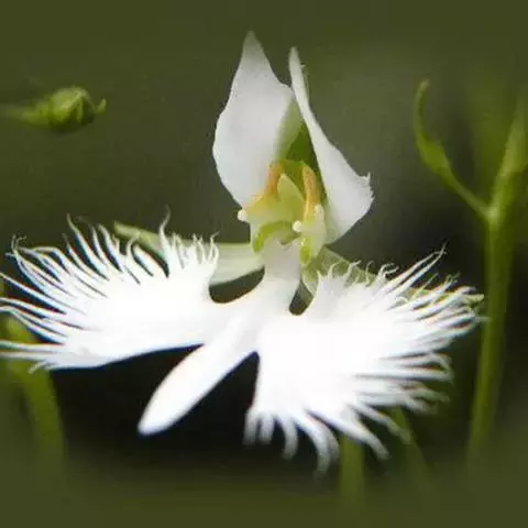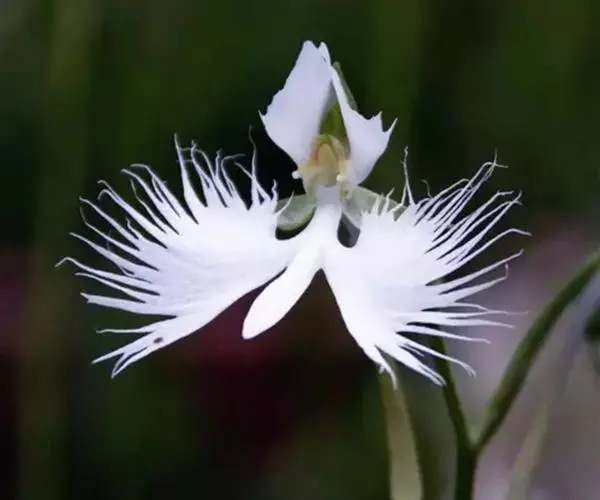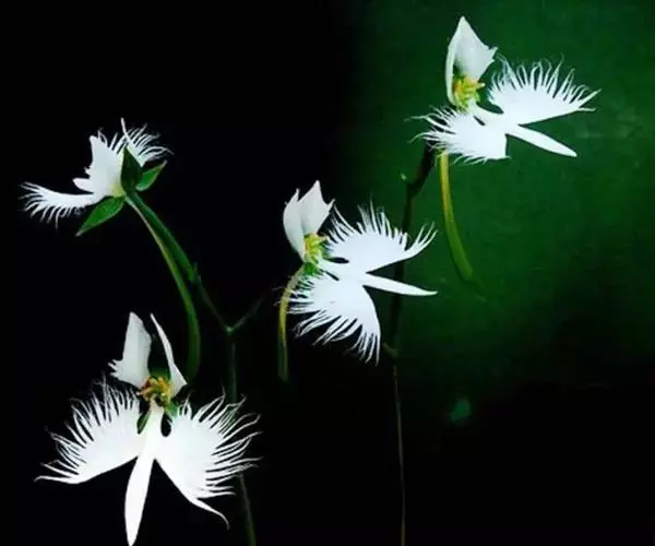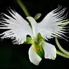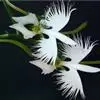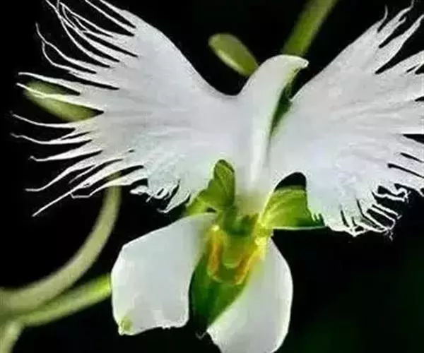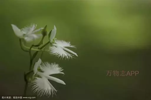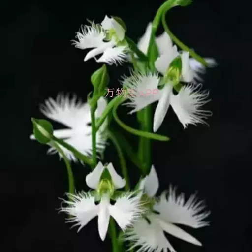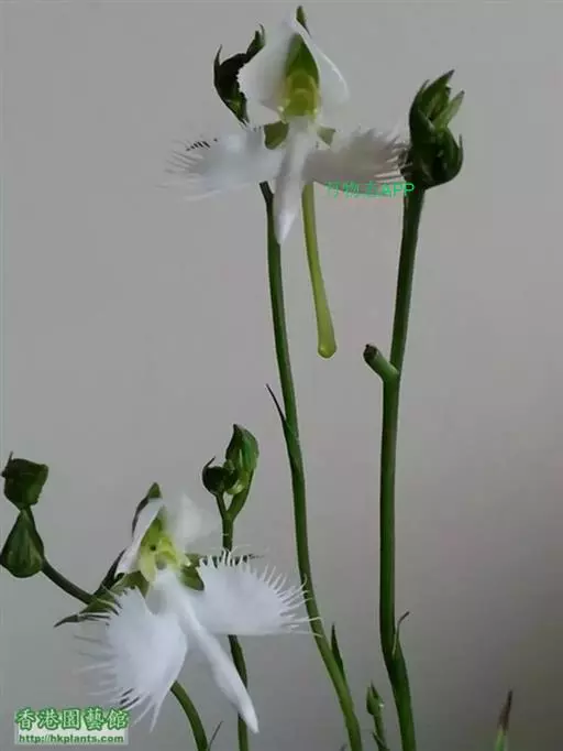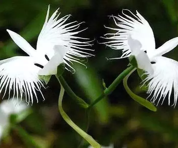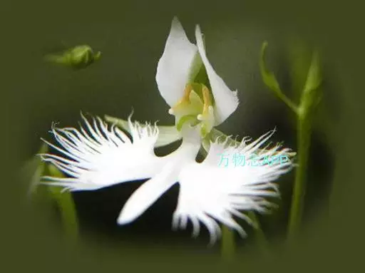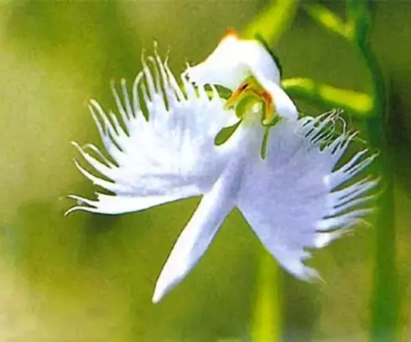 狭叶白蝶兰(学名:Pecteilis radiata (Thunb.) Rafin.):植株高18-35厘米。块茎椭圆形或近球形,肉质。茎细长,直立,基部具3-5枚叶。叶片线形,长5-10厘米,宽3-6毫米,向上伸展,先端渐尖,基部成抱茎的鞘。总状花序具1-2朵花;花较小,直径约1.5-3厘米,白色;萼片淡绿色,狭卵形;花瓣白色,斜卵形,直立,长10-12毫米,先端近急尖,外侧边缘具齿或浅的流苏,与中萼片靠合呈兜状;唇瓣白色,短楔形,长约巧毫米,3深裂。花期7-8月。