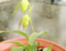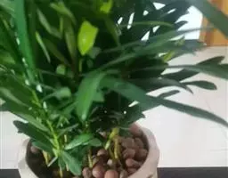 方法一 准备好兰盆及植料后,将兰株倒拿(根在上,叶在下)放于水龙头下以慢水冲洗,但水压切忌过强,以免伤兰根及叶子。用拇指和食指抓住兰头,小指抵住盆缘,用竹筷将根固定,当放入盆内时,尽量不要让根接触到盆壁。将豆粒大的混合石砾倒入盆底至三分之一处。然后倒入中粒植料至五分之四处,填实和尽量不要留下空间。将竹筷拔出,并摇实盆中植料。填实植料后,再用大粒植料埴入至距盆缘1.5厘米处。最后再倒入豆粒大植料,以将假鳞茎全部埋入土中为度,然后充分摇实。用压土工具轻压植料,并将表面弄平。种植完毕后,植料在盆中以中央稍高为好。