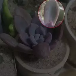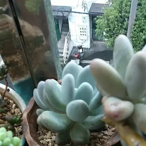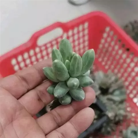 三日月美人叶子比较扁,有透明感,形状像星美人和青星美人,比较容易和其他美人多肉区分开来,三日月美人最突出特点是:叶顶端的尖非常突出、显眼。