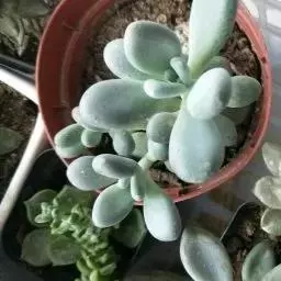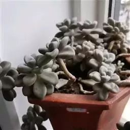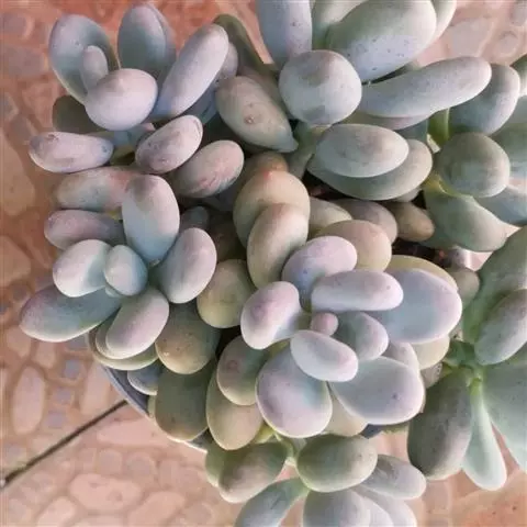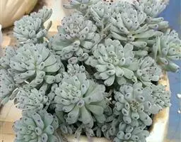蓝黛莲是一种景天科厚叶草属植物。叶片呈略扁的圆柱形,排列成莲座状;颜色为灰绿色,…