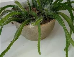 姬珊瑚为仙人掌属植物。姬珊瑚又叫仙人条,是一种灌木状的多肉盆栽植物,属于双子叶植物,浑身长满尖刺,…