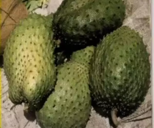 刺果番荔枝(学名:Annona muricata Linn. ),为毛茛目、番荔枝科 、番荔枝属的一种常绿乔木。高达8米;树皮粗糙。叶纸质,倒卵状长圆形至椭圆形,叶面翠绿色而有光泽,叶背浅绿色,两面无毛。花蕾卵圆形;花淡黄色;萼片卵状椭圆形,宿存;外轮花瓣厚,阔三角形;雄蕊花丝肉质,药隔膨大;心皮被白色绢质柔毛。果卵圆状,深绿色,果肉微酸多汁,白色;种子多颗,肾形,棕黄色。花期4-7月,果期7月至翌年3月。