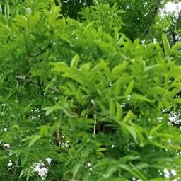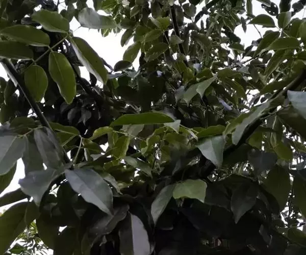 常绿或落叶乔木,高达20-30米,胸径可达1米;树皮灰绿色,平滑。小枝绿色,幼时有黄褐色细毛,后变光滑;冬芽有褐黄色细毛。奇数羽状复叶,长12.5-23厘米;叶柄长2-4厘米,叶轴长3.5-7.7厘米,叶轴在最上部一对小叶处延长0.2-2厘米生顶小叶;小叶(1-)2(-4)对,薄革质,卵形或卵状椭圆形,稀近圆形,长3-10.5厘米,宽1.5-5厘米,先端急尖或渐尖,基部圆形或阔楔形,上面深绿色,下面淡绿色,幼叶疏被细毛,老则脱落无毛或仅下面中脉有疏毛,侧脉8-10对,和中脉成60°角,干后侧脉和细脉均明显凸起成网格;小叶柄长2-6毫米,圆形,无凹槽,小叶柄及叶轴疏被毛或无毛。