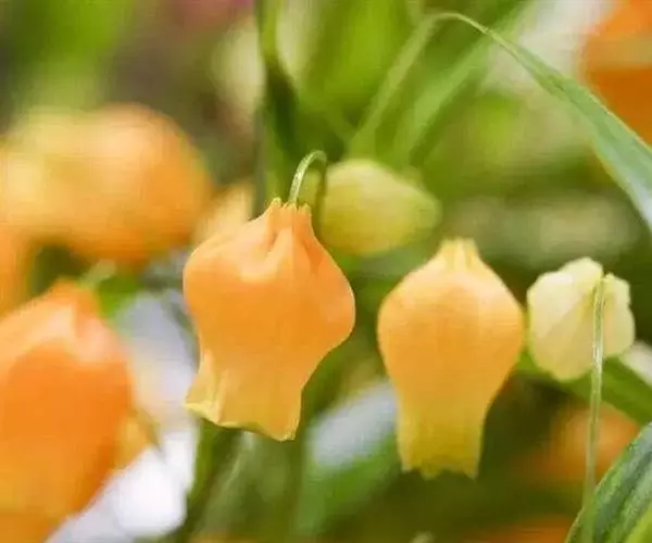 宫灯百合植株为半蔓性,高约1米。叶轮状互生,叶面光滑,柳叶形,长约5-10厘米,宽约2-3厘米,有3条深刻纹,无柄。叶轮状互生,叶面光滑,柳叶形,长约5-10厘米,宽约2-3厘米,有3条深刻纹,无柄。花似小宫灯,上大下窄,宽长约2厘米,有长柄,约5厘米,花期相当长,是仲夏至秋冬时即难得一见的奇异花卉。蒴果。喜冷凉气候,夏天时分於高海拔的冷凉地栽植,7-10月开花;平地则约於10-3月开花。