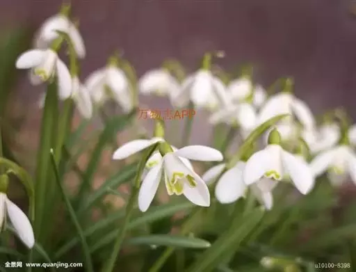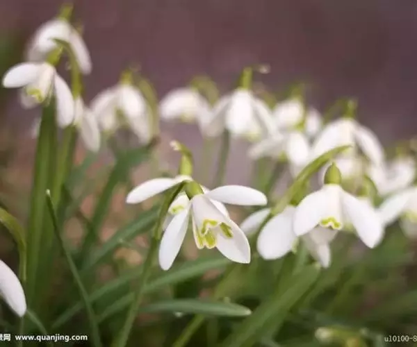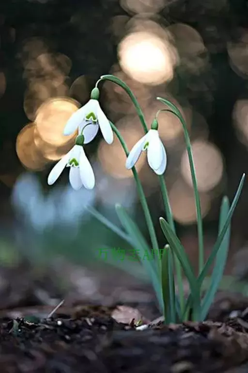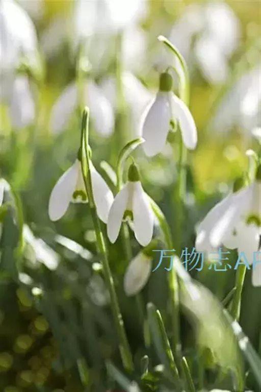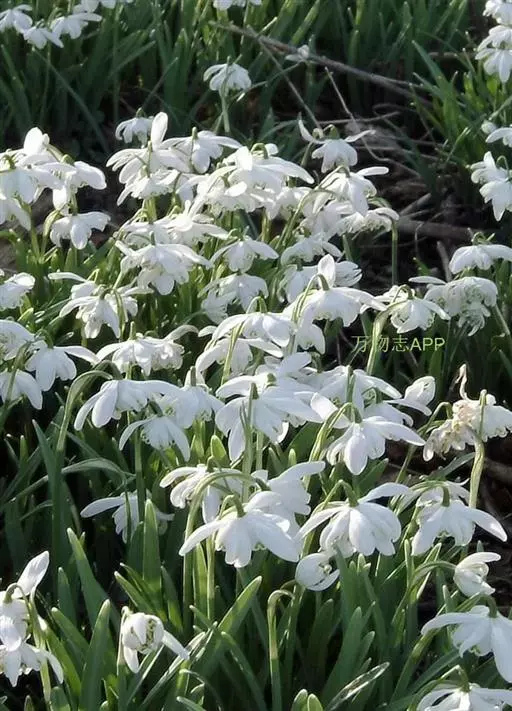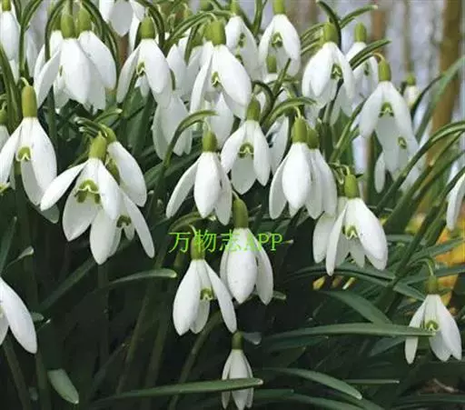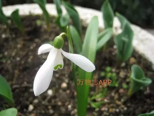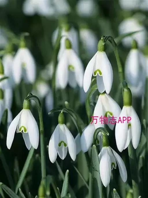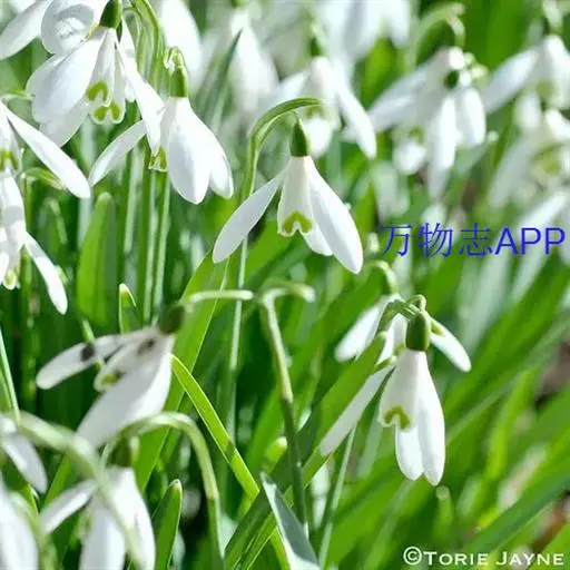 雪滴花 多年生草本,株高10~30cm。鳞茎小,径1.8~2.5cm,球形。叶丛生,线状带形,绿色被白粉,长15~23厘米,宽1.3厘米。