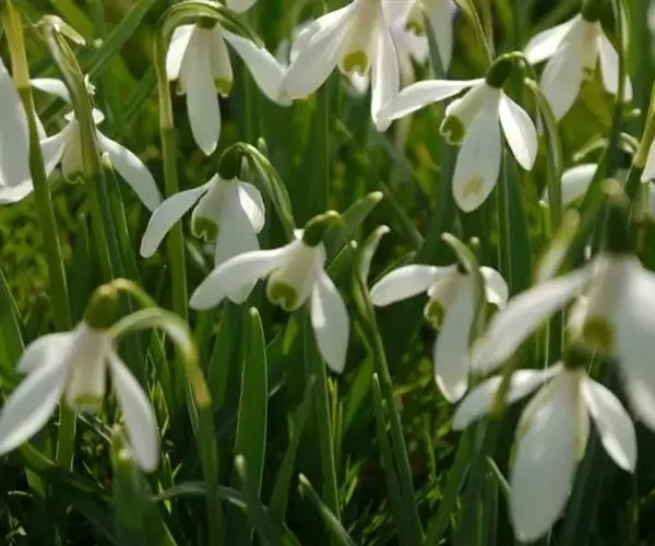 雪滴花是的一种泪珠状的耳环和该花的形状相似,而不是因为在下雪的天气开花命名的。雪滴花株丛低矮,花叶繁茂,不畏春寒,傲然开花。宜于半阴林下或草坪中丛植,又适合花境和岩石园中点缀,也可盆栽供室内摆设或做切花。