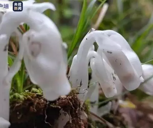 花亭直立,中空,扁圆形;花顶部单生,下垂;花梗短;花被片6,椭圆形,无筒部,呈广钟形,白色,每裂片端具一绿点。花期早春3月下旬至4月。
