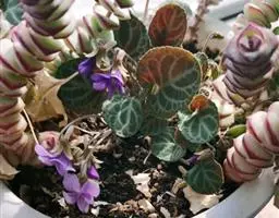 三色堇多肉为景天科拟石莲花属一种多年生肉质植物,为园艺杂交品种,老茎木质化,直立,紫红色,易群生,株型外观莲座状;叶肉质,卵形、长椭圆形,匙形,具短叶尖,蓝绿色,出状态的时候叶缘泛粉红至紫红色。