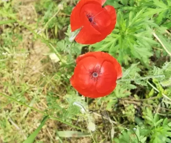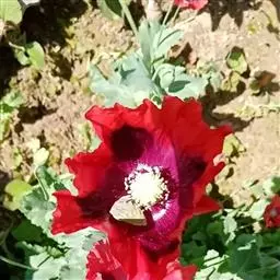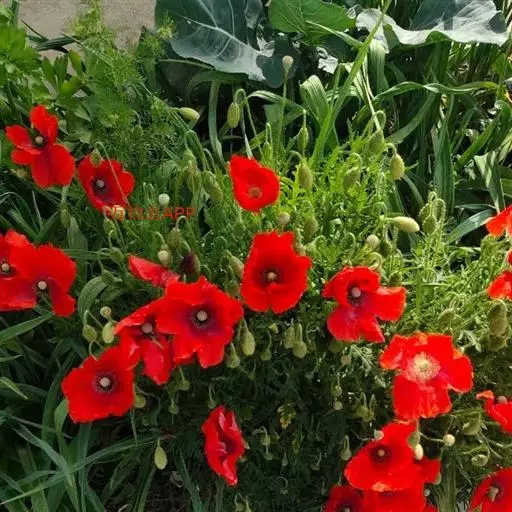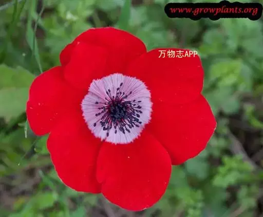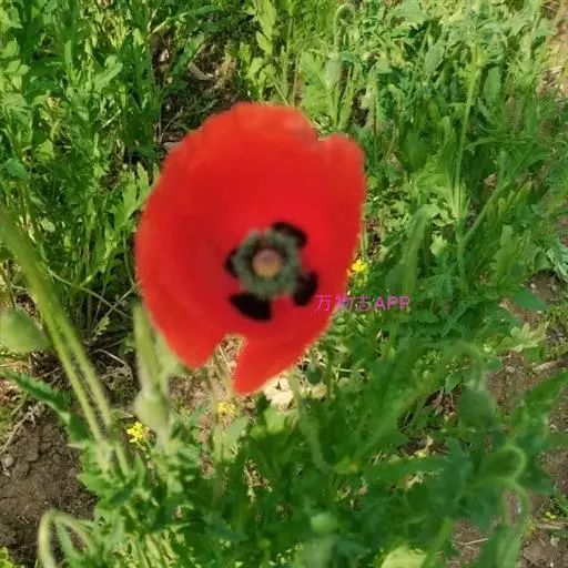 花单生于花葶顶端,4瓣或重瓣,纸质而有光彩,大红色或血红色,非常娇艳。花期4-5月。喜欢生活在麦田里,广泛的播撒它们细小的种子,休眠在泥土里的种子在土地翻耕后生长最好。主要特征为花心是黑色。
