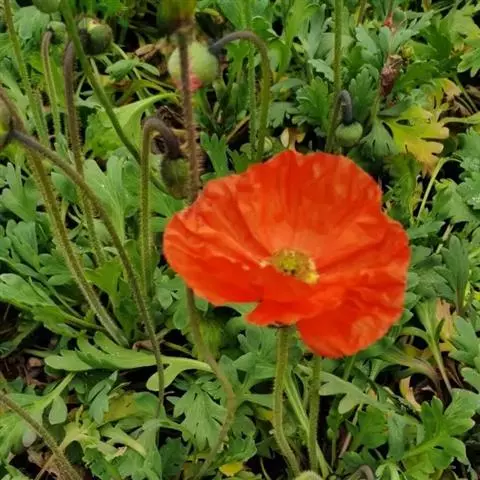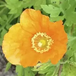 野罂粟 Banfi, Bartolucci, J.-M.Tison & Galasso)是罂粟科、高山罂粟属多年生草本植物。株高20-50厘米,具乳汁,全体被粗毛。叶生基生,具长柄;叶片轮廓卵形或长卵形、狭卵形或披针形,先端钝圆,两面疏生微硬毛。花单独顶生。萼片2,广卵形,被棕灰色硬毛,花开后脱落。花瓣4,桔黄色,倒卵形至宽倒卵形,具微波状缺刻。雄蕊多数,花丝丝状;子房具棱,柱头5-9裂。蒴果,狭倒卵形,密被视而长的硬毛,顶孔开裂。种子细小,多数。花期6-7月,果期8月。生于海拔580-3500米的林下、林缘、山坡草地。两半球的北极区及中亚和北美等地有分布。原产地俄罗斯;引入阿拉斯加、格陵兰岛和中国多地。