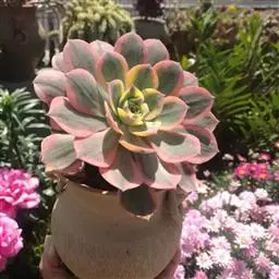 女雏是景天科石莲花属的多肉植物。特征是小巧的株形和橙粉色叶缘。极易生侧芽,…