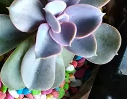 紫珍珠是景天科石莲花属的多年生肉质草本植物。植株中小型;叶片肉质,匙形,呈莲座状紧密排列;叶片粉紫色,…