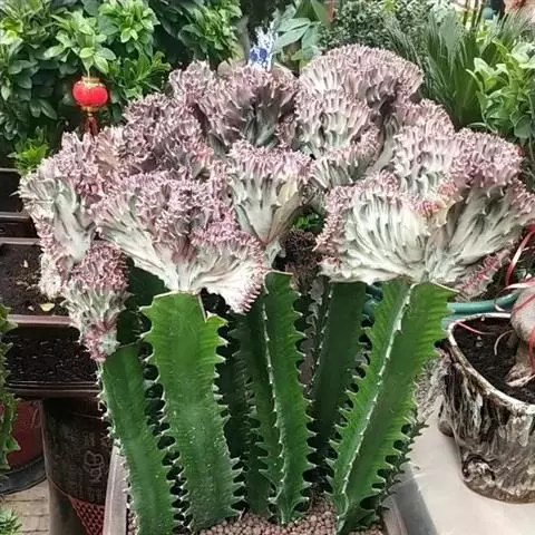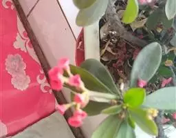 虎刺梅:别称铁海棠,是蔓生灌木植物。茎多分枝,长60-100厘米,直径5-10毫米,具纵棱,密生硬…