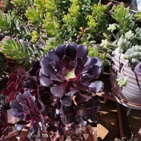 黑法师是景天科莲花掌属植物,自然界不存在分布。紫黑色的叶片呈莲座状层叠排列,给人以庄重神秘之感,…