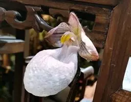 喉红石斛:附生。茎丛生,直立,粗短,近棒状纺锤体。叶2-4枚,生于茎顶。总状花序顶生,花序轴长5-…