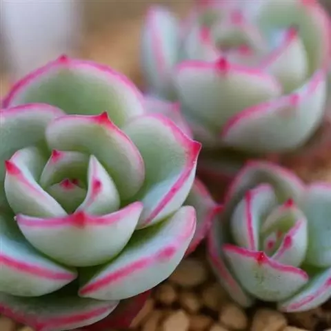 大和锦是景天科拟石莲花属的多肉植物。肉质叶排成紧密的莲座状,广卵形至散三角卵形,背面突起呈龙骨状,…
