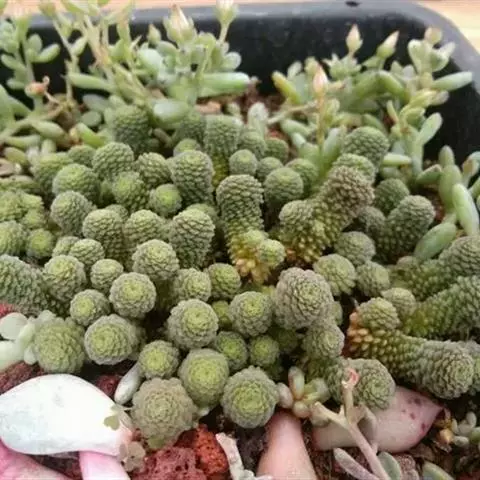 铭月是景天科景天属的多年生亚灌木。多分枝,茎蔓生或直立,高约10-30厘米。…