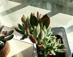 红缘莲花掌属蔷薇目、景天科植物,原产大西洋的加那利群岛。质厚,蓝绿色,被白霜,叶缘红褐色。聚伞花序,…