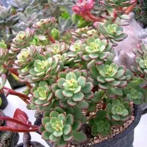 红化妆是虎耳草目、景天科、拟石莲花属植物,是多茎莲与静夜的杂交后代。…