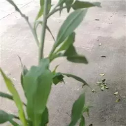 叶互生,狭披针形至线形,长2-7厘米,宽2-8毫米,先端锐尖,基部楔形,上面绿色,下面粉绿色,有褐色腺点;叶柄短,长约0.5毫米。