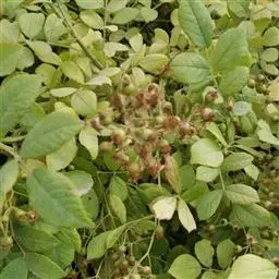 主要侵害叶片、叶柄和嫩梢,叶片初发病时,正面出现紫褐色至褐色小点,扩大后多为圆形或不定形的黑褐色病斑。可喷施多菌灵、甲基托布津、达可宁等药物。