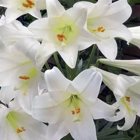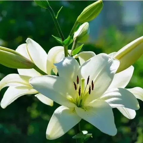百合花的种头是由近百块鳞片抱合而成,古人视为“百年好合”、“百事合意”的吉兆。故历来许多情侣在举行婚礼时都要用百合来做新娘的捧花。除了这种好意头之外,它那副端庄淡雅的芳容确实十分可人。它植株挺立,叶似翠竹,沿茎轮生,花色洁白,状如喇叭,姿态异常优美,能散出隐隐幽香,被人誉为“云裳仙子”。故在国际花卉市场上长期走俏,历久不衰。
