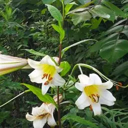岷江百合是百合科百合属的多年生鳞茎草本植物。鳞茎宽卵圆形,鳞片披针形,茎有小乳头状突起;狭条形叶散生,…