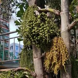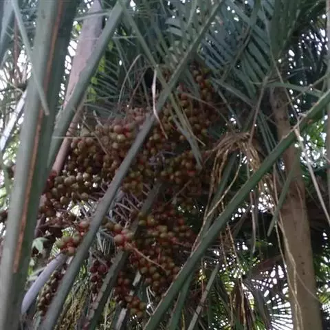 种子处理:桄榔树果实成熟不一致,每年从夏到冬均有成熟,桄榔树果穗有果实数百颗,每颗有种子1-2粒,核果球形或椭圆形。果实成熟时果皮蜡质,暗红色,剖开果实见种子呈暗褐色,此时可采种。种子处理方法有两种:一是将果实堆沤数日,待果皮腐烂后置水中搅拌,洗净种子;二是将果实摊放于通风处,当果皮干缩开裂后剥出种子。