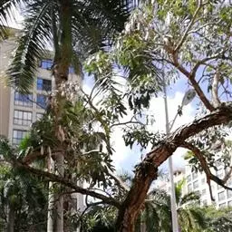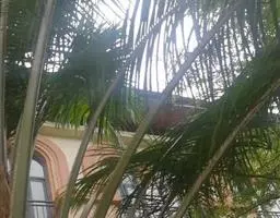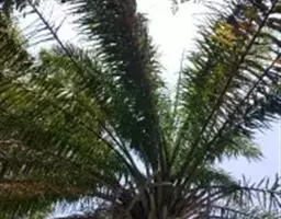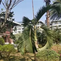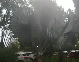 桄榔(学名:Arenga pinnata (Wurmb.) Merr. )是棕榈科,桄榔属乔木状植物,茎较粗壮,高可达10米,有疏离的环状叶痕。叶簇生于茎顶,羽状全裂,羽片线形或线状披针形,基部两侧常有不均等的耳垂,上面绿色,背面苍白色;花序腋生,花序梗粗壮,下弯,分枝多,佛焰苞多个,螺旋状排列于花序梗上;雄花大,果实近球形,具三棱,种子黑色,卵状三棱形,6月开花,果实约在开花后2-3年时间成熟。