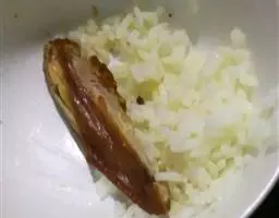 3、石锅刷一层油,上面铺好白米饭。