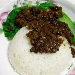 白米饭上盖上黄豆芽等蔬菜,肉和鸡蛋等佐料,盛在滚烫的石碗内,加放适量的辣椒酱后,搅拌而食,这就是韩国料理中的石锅拌饭。拌饭的佐料很关键,蔬菜最好选用嫩豆芽、芹菜、红萝卜丝、蘑菇丝,用油和黑胡椒粉炒熟;荤的选用酱料炒好的肉末。白米饭煮熟后,放入石锅前,在石锅底部及边缘涂抹一层香油,其作用是不使米饭粘锅,同时增加了油香的味道。把石锅放在炉子上,炉子要开最小的火,然后把各种蔬菜佐料放在米饭上面,最后撒点芝麻,淋香油。煎鸡蛋时蛋黄完整而表面凝结,使其脱离蛋清而不破裂,不能煎太熟。把煎好的鸡蛋铺在石锅饭上面。石锅放入米饭后,铺上与之相拌的蔬菜、肉末与鸡蛋,加热后当香油 “嗞嗞”作响时端下,浓香四溢。