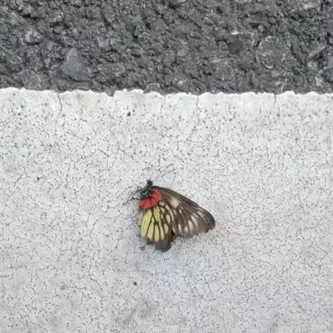 孔雀蛱蝶展翅宽50~60mm。翅膀表面红色,上、下翅有一大型彩色眼纹;翅膀腹面淡褐色,拟似烟熏枯叶…