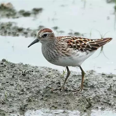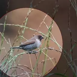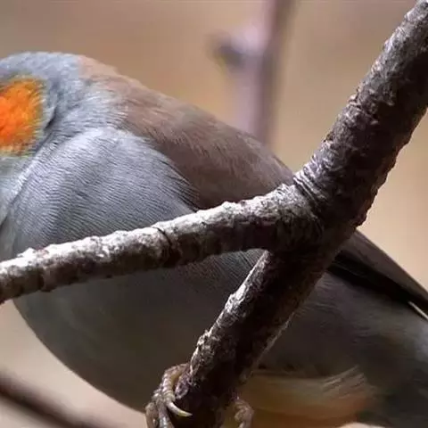 橙颊梅花雀体长约10厘米,头部灰色,两侧有大块橙色区域,嘴基及眼下方有黑纹,两条黑纹间呈白色,…