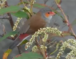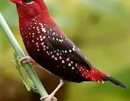 红梅花雀小型鸟类,体长9-10厘米。雄鸟通体朱红色,背、肩、胸等满布白色小斑点,…