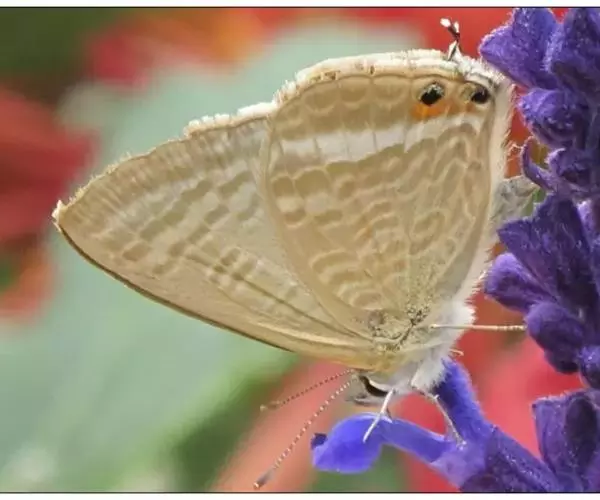 长尾蓝灰蝶是灰蝶科的一种。 幼虫食用假地豆和显脉山绿豆;展翅约 25毫米;雌雄二型;四月至十二月可见。…