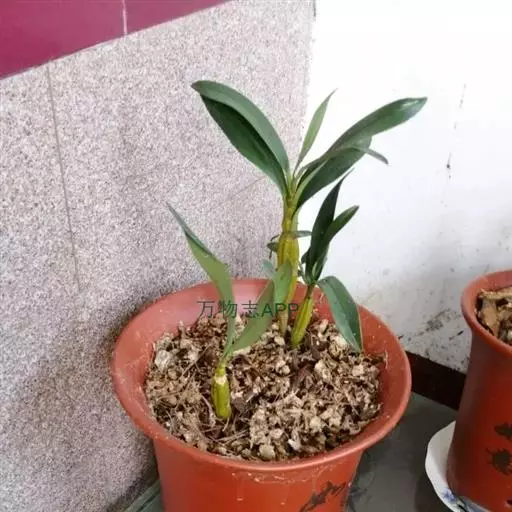 矮石斛:茎直立或斜立,粗短,纺锤形或短棒状,具许多波状纵条棱和2-5节。叶2-4枚,近顶生,革质,…