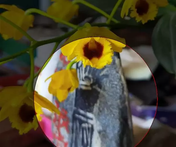 花瓣倒卵形,等长于中萼片,宽约为萼片的2倍,先端近圆形,具约10条脉;唇瓣的颜色比萼片和花瓣深,近肾状圆形,长约2厘米,宽2.3厘米,先端浅2裂,基部两侧多少具红色条纹,边缘波状,上面密被短绒毛;唇盘通常呈“∧”隆起,有时具“U”形的栗色斑块;蕊柱长约5毫米;药帽淡黄色,尖塔状。花期3-5月。