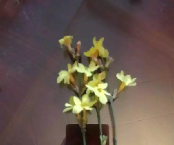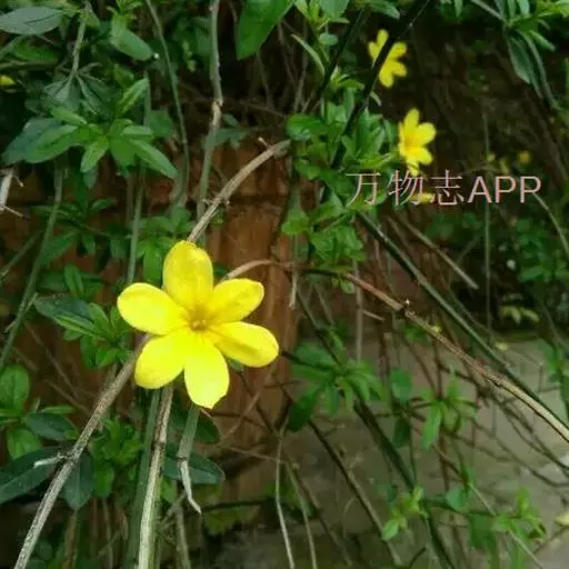 云南黄素馨,又叫云南迎春,常绿藤状灌木。小枝无毛,四方形,具浅棱。叶片对生,小叶3枚,长椭圆状披针形,顶端1枚较大,基部渐狭呈一短柄,侧生2枚小而无柄。花单生,淡黄色,具暗色斑点,花瓣较花筒长,常近于复瓣,有香气。花期3~4月。原产云南,现各地均有栽培。