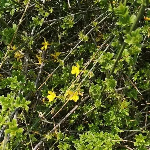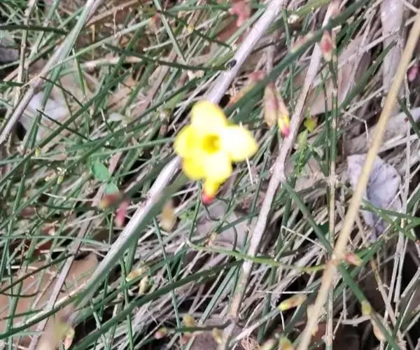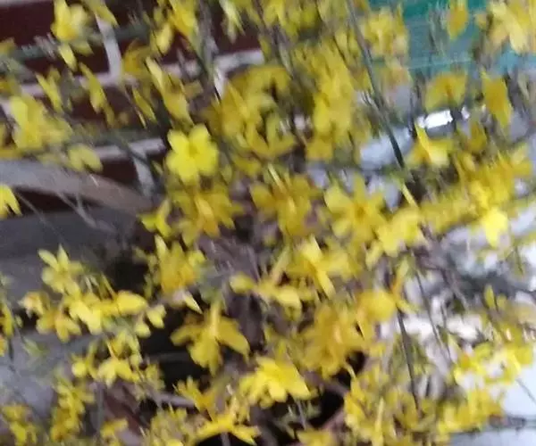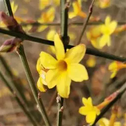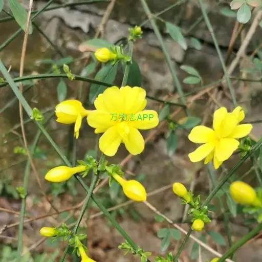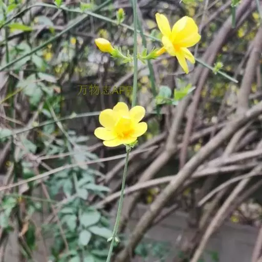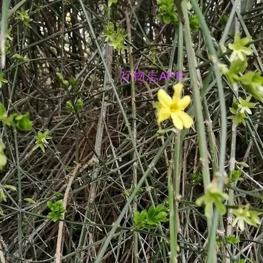 迎春花属落叶灌木植物,直立或匍匐,高0.3-5米,枝条下垂。枝稍扭曲,光滑无毛,小枝四棱形,棱上多少具狭翼。