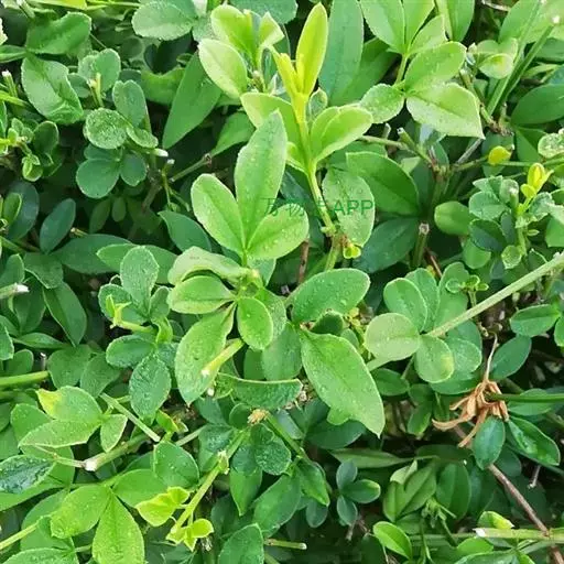 叶对生,三出复叶,小枝基部常具单叶;叶轴具狭翼,叶柄长3-10毫米,无毛;叶片和小叶片幼时两面稍被毛,老时仅叶缘具睫毛;小叶片卵形、长卵形或椭圆形,狭椭圆形,稀倒卵形,先端锐尖或钝,具短尖头,基部楔形,叶缘反卷,中脉在上面微凹入,下面凸起,侧脉不明显;顶生小叶片较大,长1-3厘米,宽0.3-1.1厘米,无柄或基部延伸成短柄,侧生小叶片长0.6-2.3厘米,宽0.2-11厘米,无柄;单叶为卵形或椭圆形,有时近圆形,长0.7-2.2厘米,宽0.4-1.3厘米。