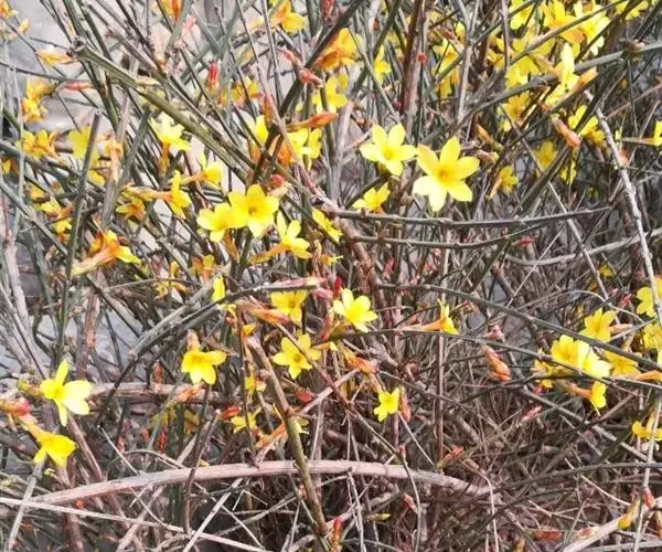 迎春在1年生枝条上形成花芽,第二年冬末至春季开花,因此在每年花谢后应对所有花枝短剪,促使长出更多的侧枝,增加着花量,同时加强肥水管理。