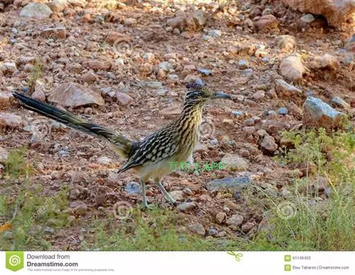 走鹃(road runner)鸟,英文名称字意为在路上赛跑者,亦称灌丛鸡(chaparralcock)。两种地栖杜鹃的统称,尤指美国西南部和墨西哥荒漠区的加州走鹃(Geococcyxcalifornianus)。体长约56公分(22寸)。羽衣橄榄褐和白色相间,有条纹。羽冠短而蓬松。眼後皮肤裸露,蓝红相间。腿粗壮,浅蓝色。尾长,凸形,向上翘。飞行笨拙且易疲乏。通常喜沿着道路跑或串行於灌木蒿和牧豆树的灌丛中,捕食昆虫、蜥蜴和蛇。捕到爬虫类後,用结实的喙将其啄死,然後从头部开始吞下。每窝产卵2∼12枚(通常3∼5枚),卵白色。营巢於仙人掌或小树下层,巢结实,由树枝构成。小走鹃(G.velox)稍小,长46公分(18寸);羽毛稍呈淡黄色,条纹较少。