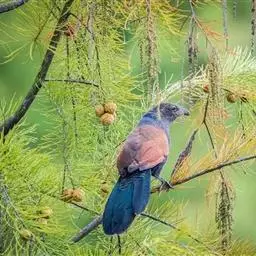绿嘴地鹃:体形似小鸦鹃,但羽色大致绿灰;嘴绿色,头侧眼的周围有一裸区;后爪弯曲。虹膜赤红色,…