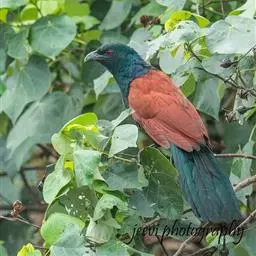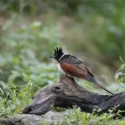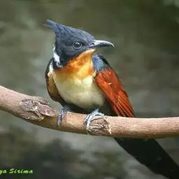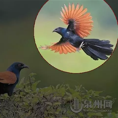 红翅凤头鹃:体长约38厘米,顶冠及凤头黑色,具显眼的直立凤头,背及尾黑色而带蓝色光泽,翅栗红色,…