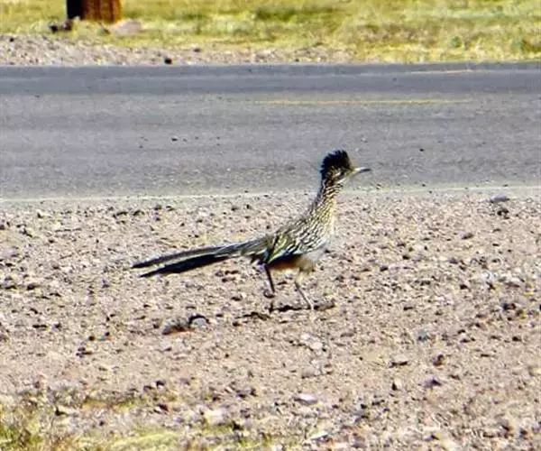 有一种鸟,叫“走鹃”(road runner)鸟,英文名称字意为在路上赛跑者,经常在儿童卡通影片出现。不知道你有没有看过,就是脖子很长,头上有根羽毛,然后尾巴也是长长的,嘴巴扁扁的。