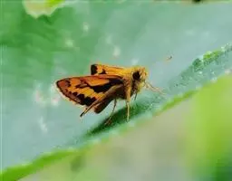 姜弄蝶 Udaspes folus ,又叫银斑姜蝶。幼虫吐丝粘叶成苞,隐藏其中取食,…
