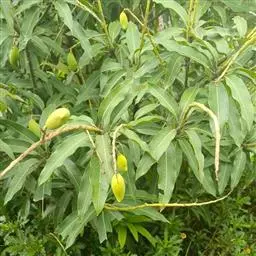椰香芒又名“鸡旦芒”,台湾名“大益利”,原产印度,在海南省西南部栽培较早结果和丰产。其嫁接树植后3-4年结果,6龄树亩产可达500-600公斤。5-7月成熟,果实卵形或长卵形,平均单果重120-150克,水肥充足者达200克。成熟时果皮黄绿色,果肉橙黄色或橙红色,肉质结实、细腻,纤维极少,味甜,有椰乳香气。种子单胚,果皮厚,较抗果实蝇为害。在光照充足环境下较高产,但在丰年加施肥、修剪不及时植株易衰竭,导致次年减产或失收。该品种易感染白粉病与流胶病。